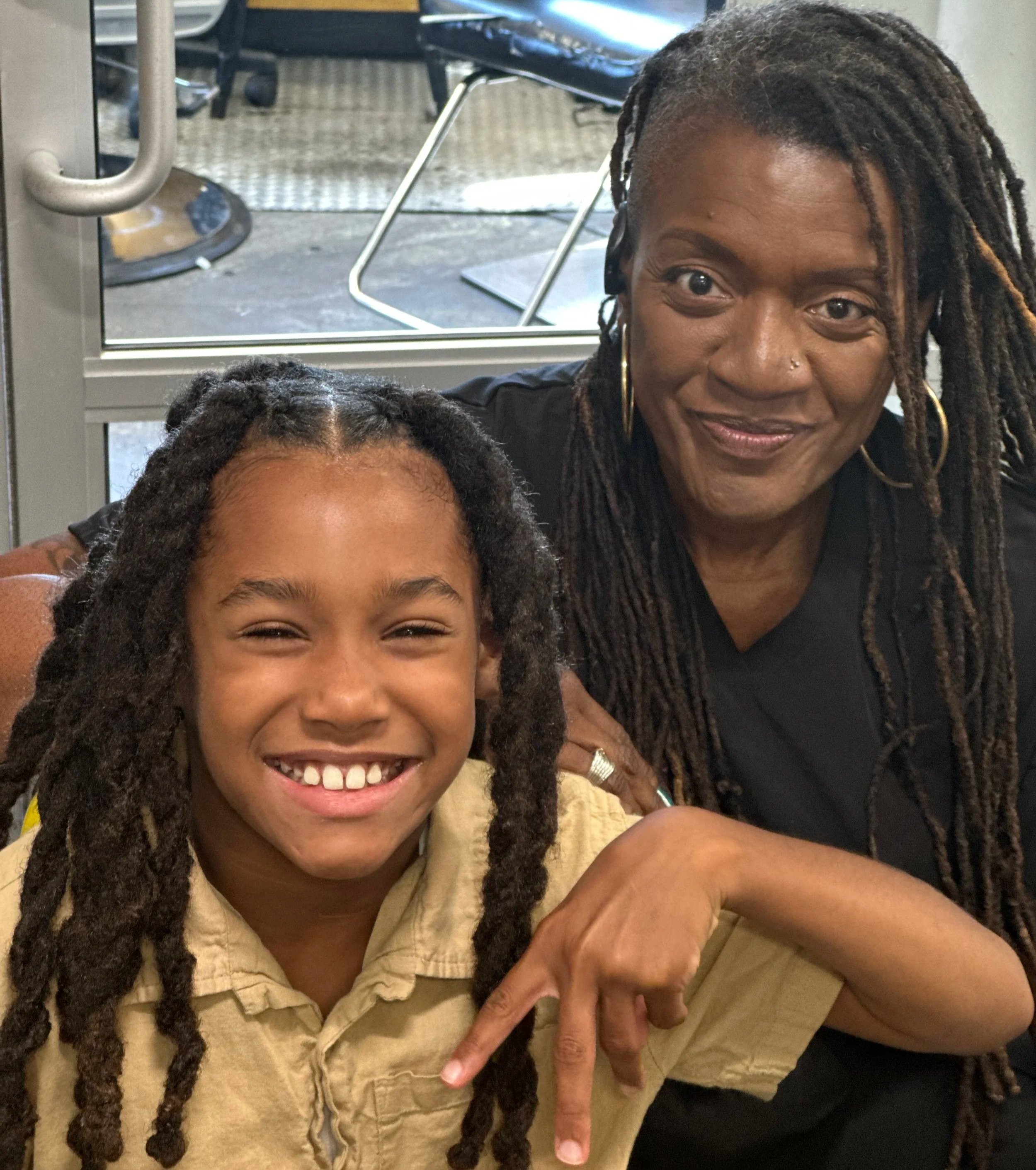Seven years ago, Jahriel’s mother, grandmother, and aunt brought him to Erica to start his loc journey. He was just three years old and living with cerebral palsy. Every year like clockwork, Jahriel came to the salon around his birthday for a retwist. His hair was cared for at home, but professional services weren’t something his family could regularly afford.